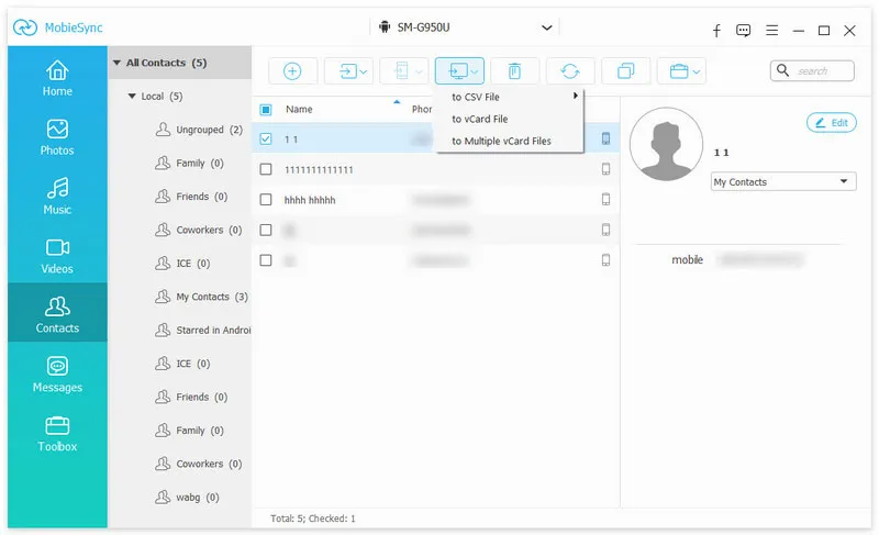 2.選擇需要轉移的聯絡人,點擊開始轉移。