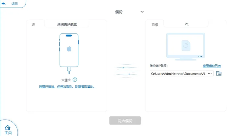3.選擇備份存儲路徑並開始備份。